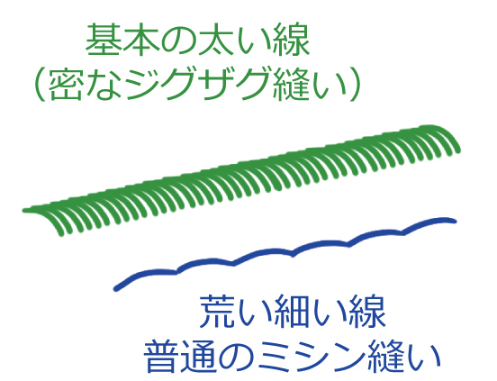 服のミシンのような縫い目になっていて、他の線に比べカクカクしているのがわかりますでしょうか?