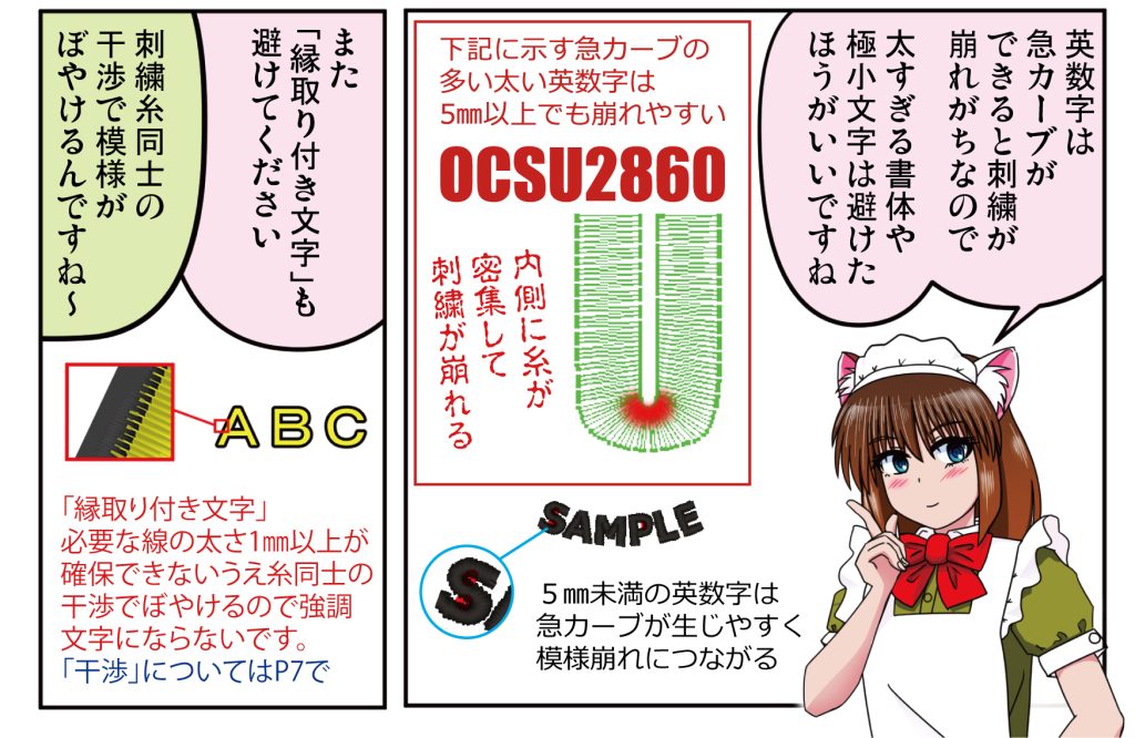 小さすぎる字は、線の太さが確保できていても刺繍が崩れやすくなります。