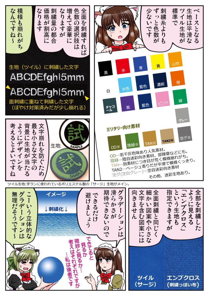 刺繍パッチ・ワッペンに用いる生地については、主に2種類に限定しています。