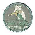 「稀にサバゲをする」 私も最近そんな感じになってしまいつつありますが(早くM40A5使いたい)、ワンコのシルエットが可愛いデザインで入稿いただきました。 シンプルなシルエットデザインのワッペンもなかなか難しいもので、ただベタっと縫うだけではなく、毛先の流れを作るなど、ちょっとした工夫を盛り込ませていただきました。